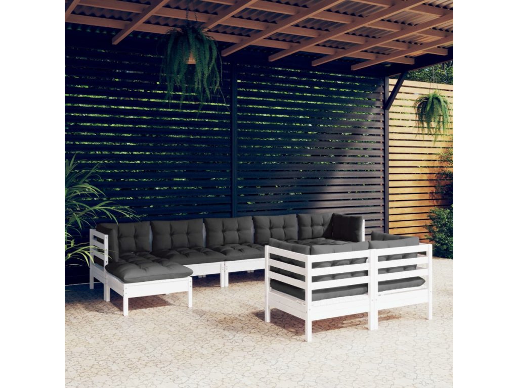 9dílná zahradní sedací souprava podušky bílá masivní borovice 3097128