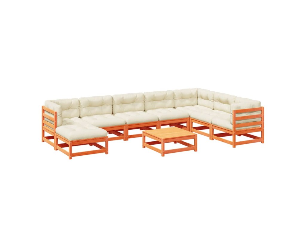 9dílná zahradní sedací souprava podušky voskově hnědá borovice 3299586