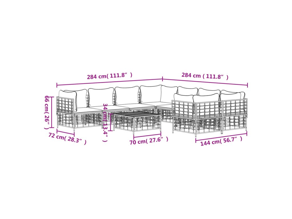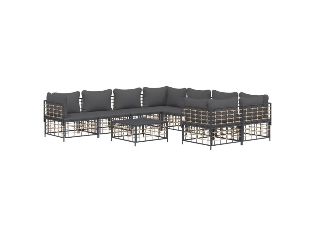 9dílná zahradní sedací souprava s poduškami antracit polyratan 3186811
