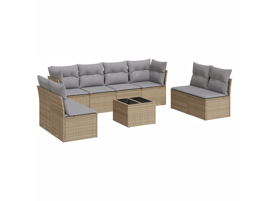 9dílná zahradní sedací souprava s poduškami béžová polyratan 3217459