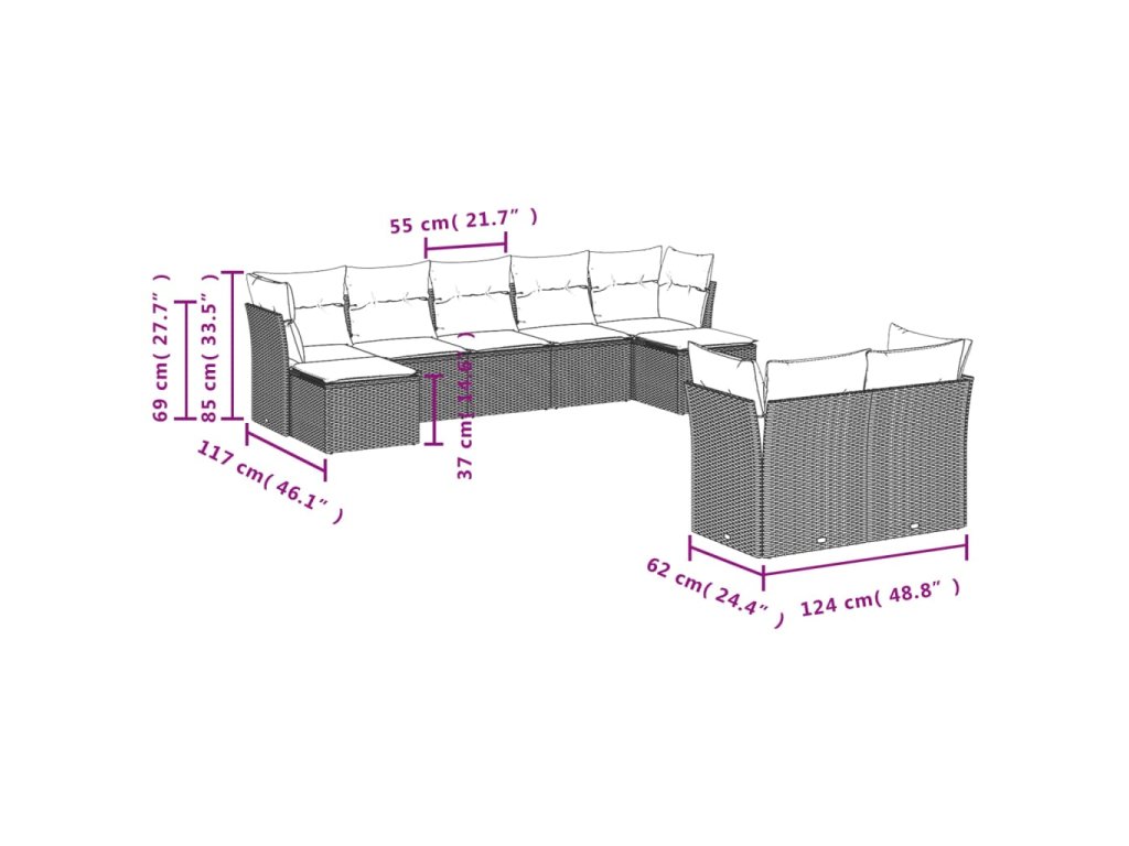 9dílná zahradní sedací souprava s poduškami béžová polyratan 3218309
