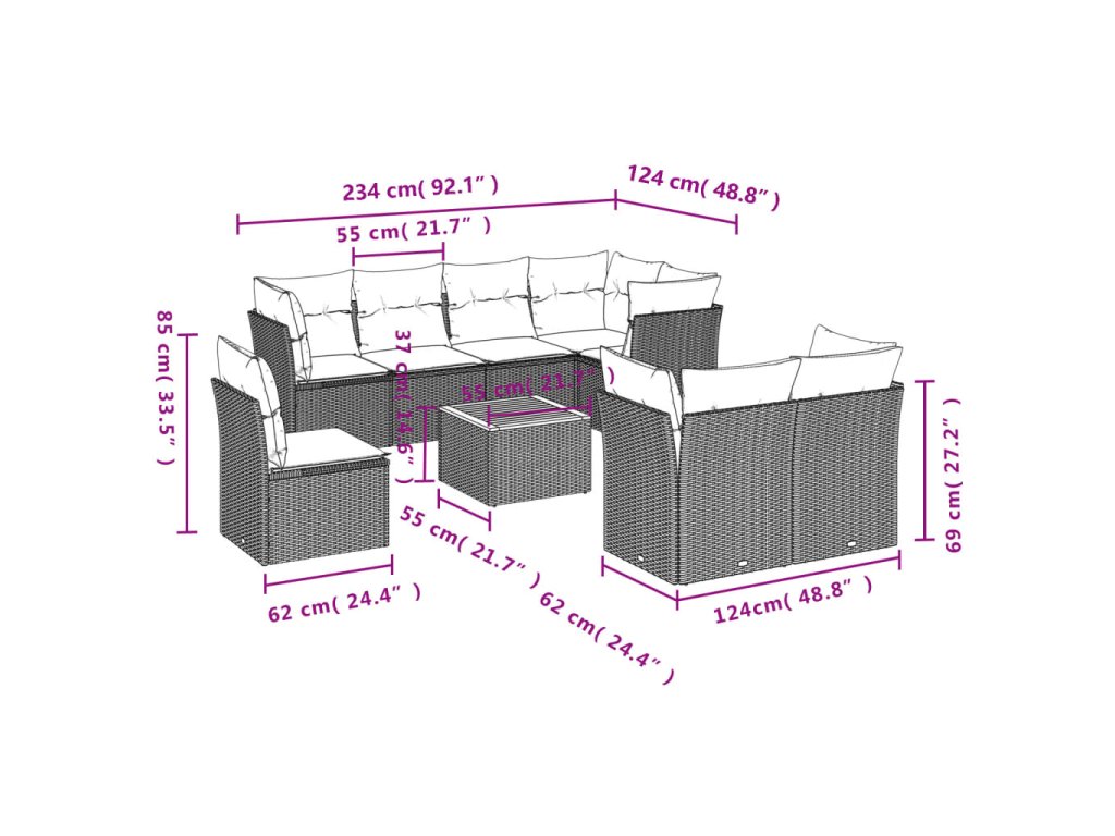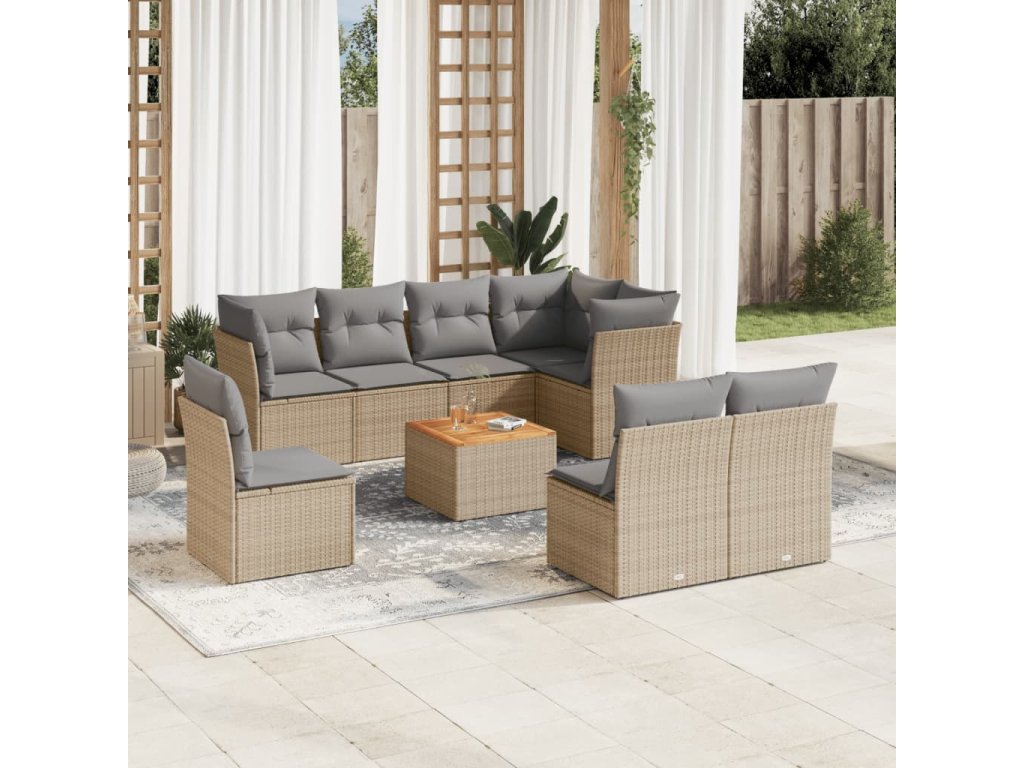 9dílná zahradní sedací souprava s poduškami béžová polyratan 3223742