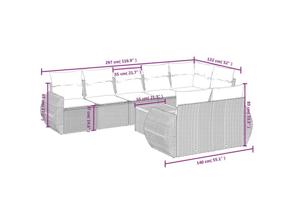 9dílná zahradní sedací souprava s poduškami béžová polyratan 3225093
