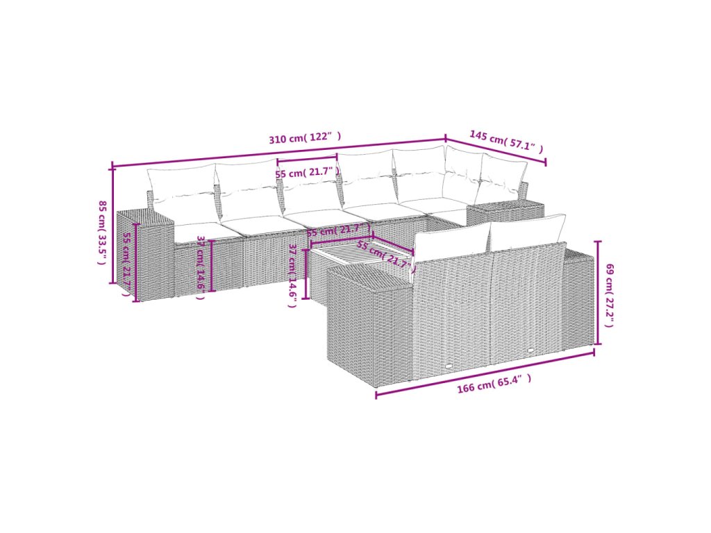 9dílná zahradní sedací souprava s poduškami béžová polyratan 3225533