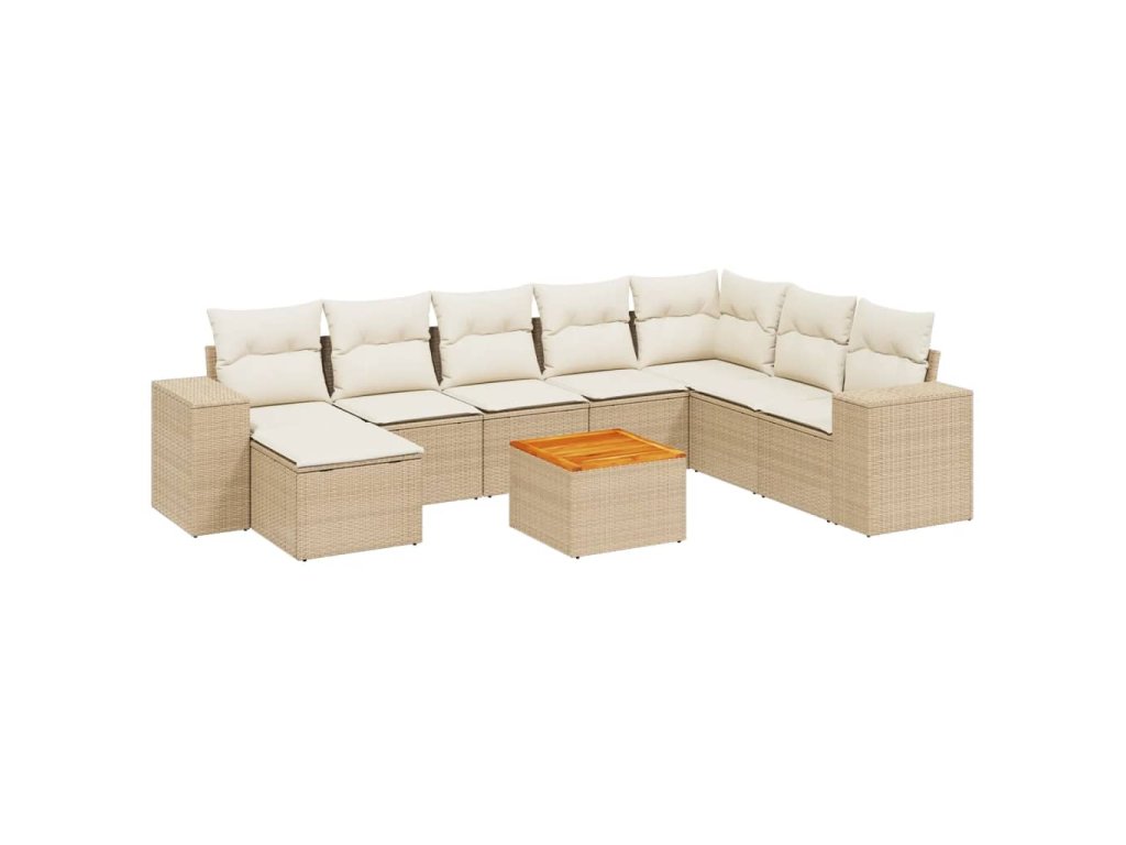 9dílná zahradní sedací souprava s poduškami béžová polyratan 3225582