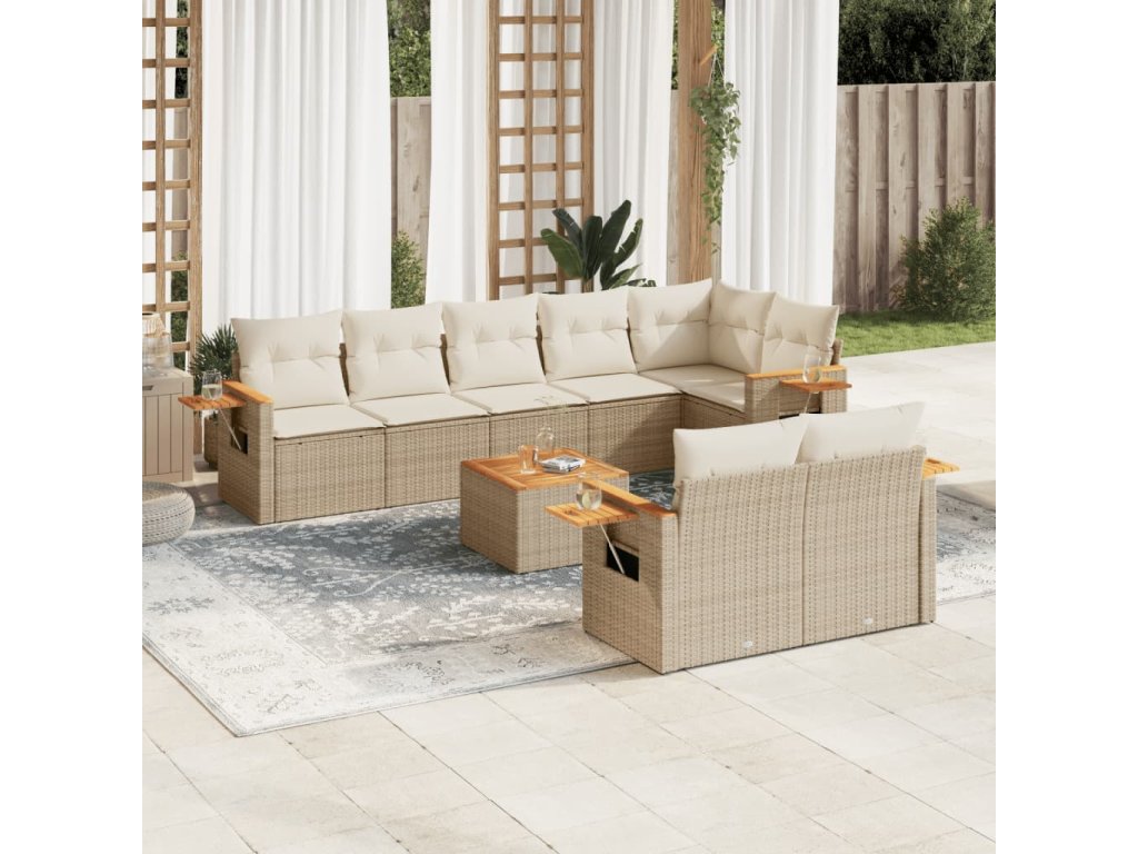 9dílná zahradní sedací souprava s poduškami béžová polyratan 3226996