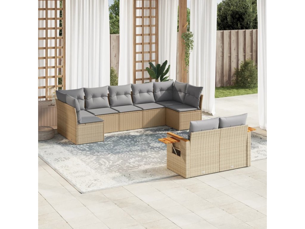9dílná zahradní sedací souprava s poduškami béžová polyratan 3227130
