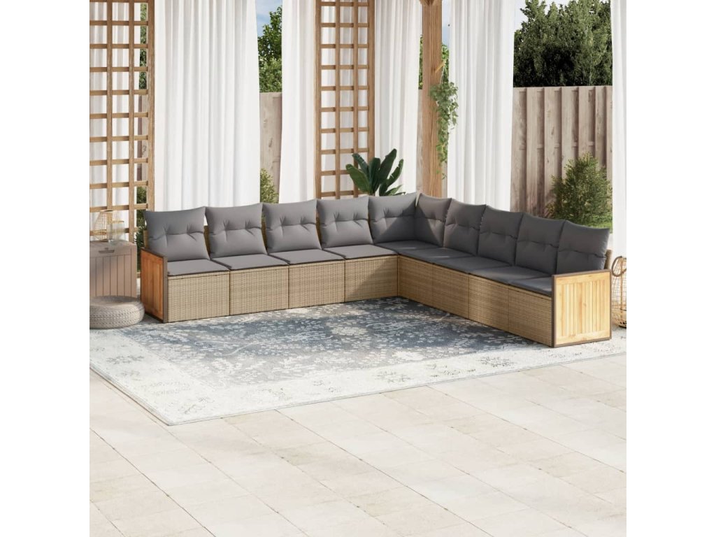 9dílná zahradní sedací souprava s poduškami béžová polyratan 3227739