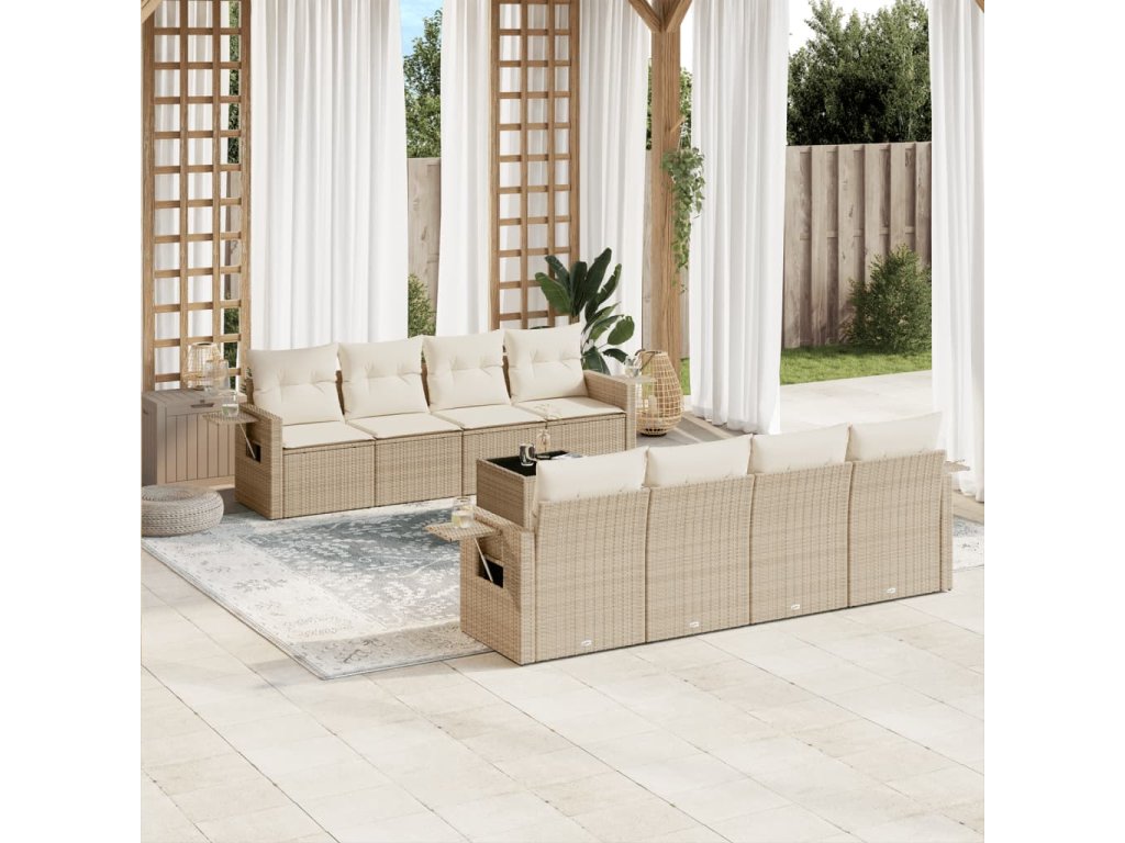 9dílná zahradní sedací souprava s poduškami béžová polyratan 3252285