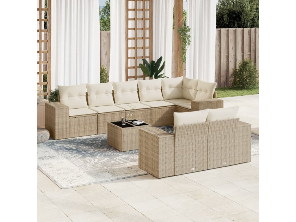 9dílná zahradní sedací souprava s poduškami béžová polyratan 3255165