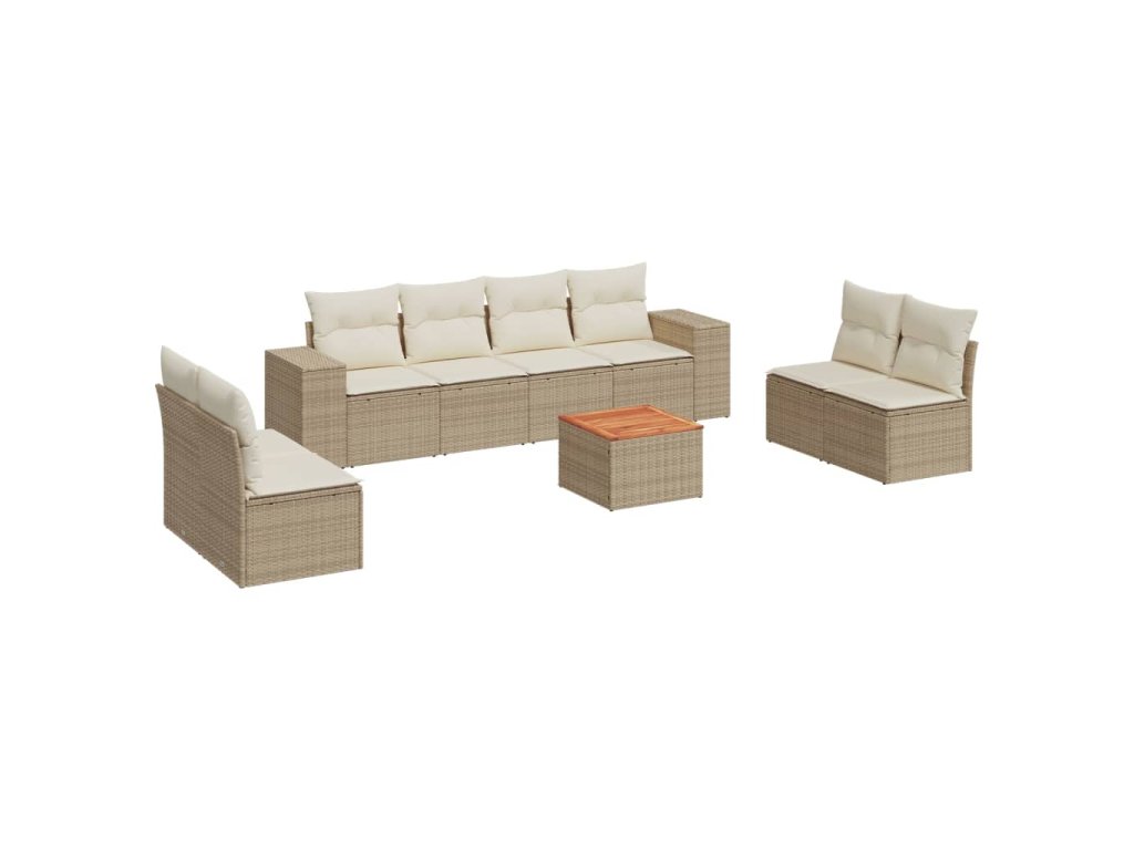 9dílná zahradní sedací souprava s poduškami béžová polyratan 3257738
