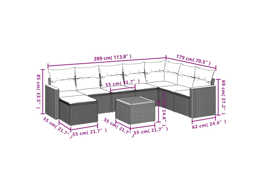 9dílná zahradní sedací souprava s poduškami béžová polyratan 3258656
