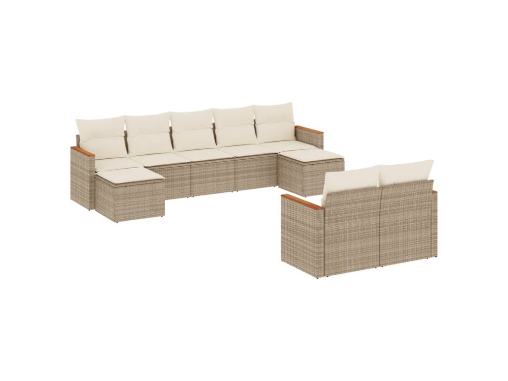 9dílná zahradní sedací souprava s poduškami béžová polyratan 3258803