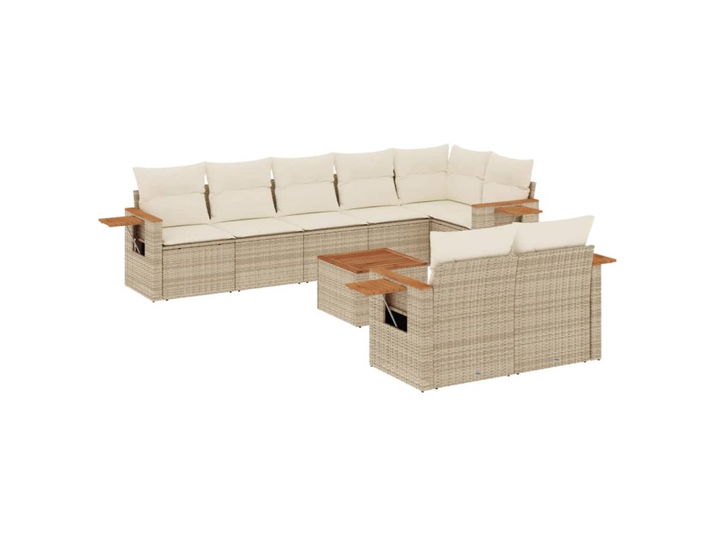 9dílná zahradní sedací souprava s poduškami béžová polyratan 3259398