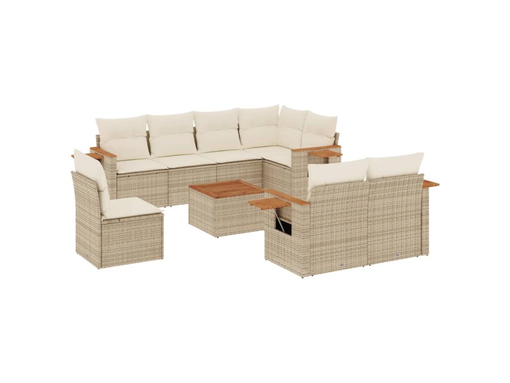 9dílná zahradní sedací souprava s poduškami béžová polyratan 3259412