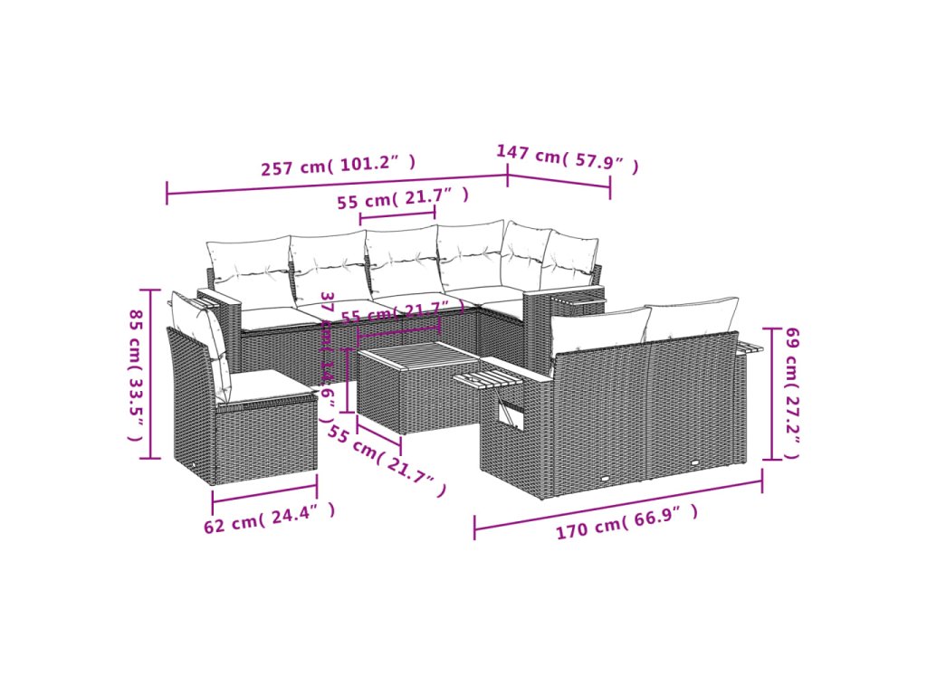 Tato zahradní sedací souprava je dokonalým doplňkem vaší zahrady, terasy nebo dvorku a poskytne vám pohodlné a příjemné místo, kde si můžete povídat s rodinou a přáteli nebo jen tak odpočívat a užívat si pobyt venku.