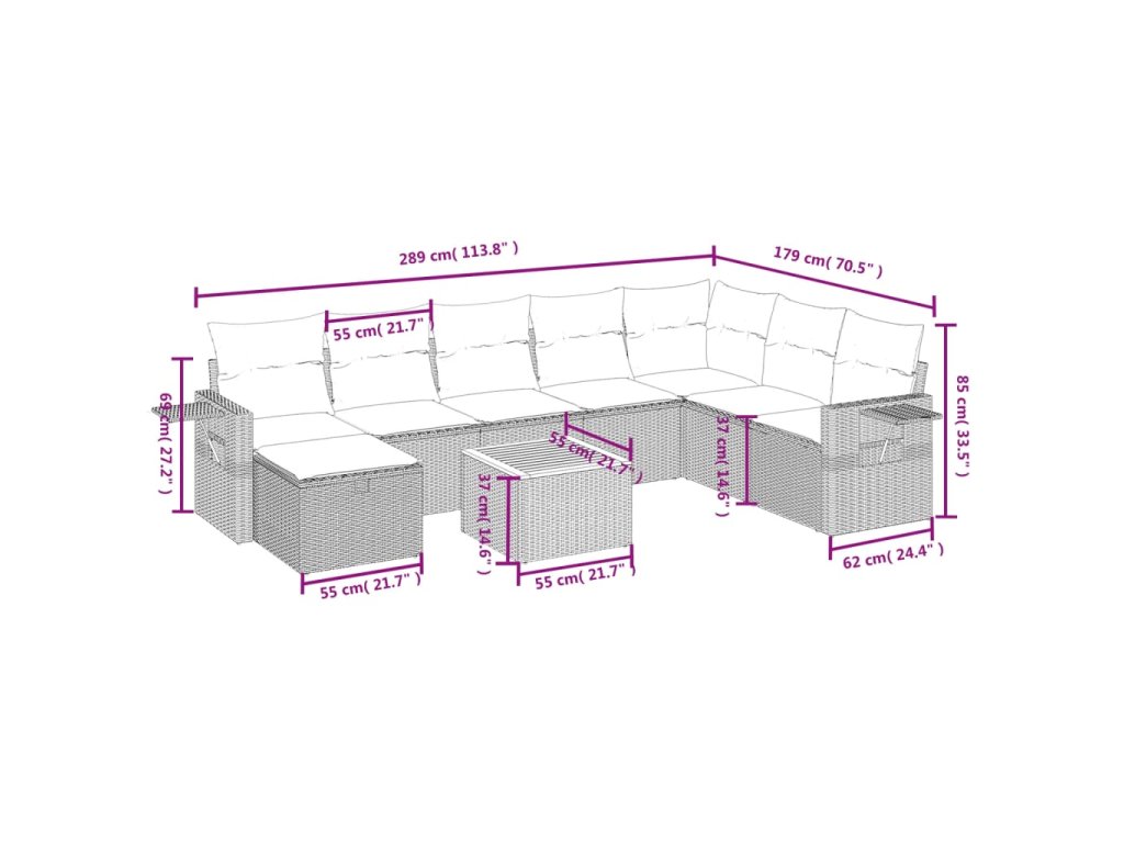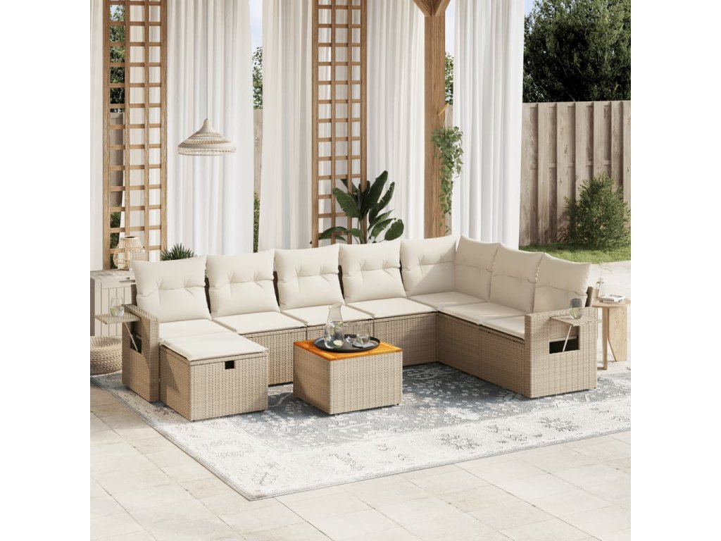 9dílná zahradní sedací souprava s poduškami béžová polyratan 3264985