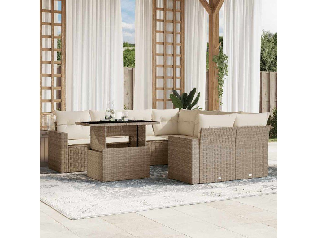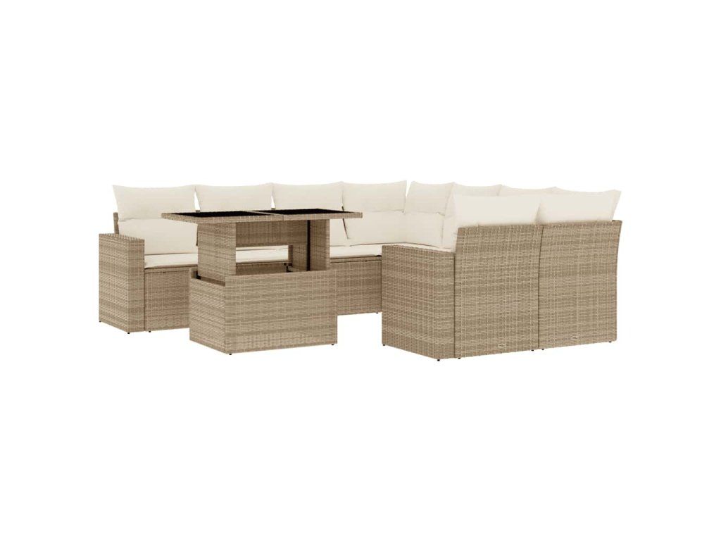 9dílná zahradní sedací souprava s poduškami béžová polyratan 3267168