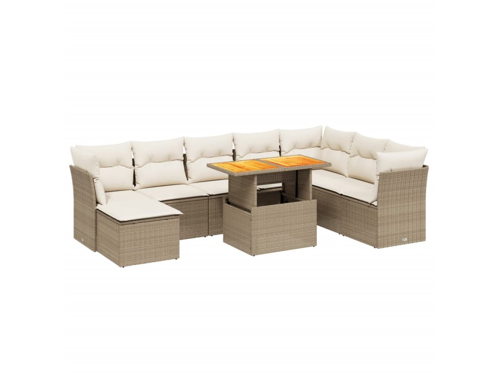 9dílná zahradní sedací souprava s poduškami béžová polyratan 3270974