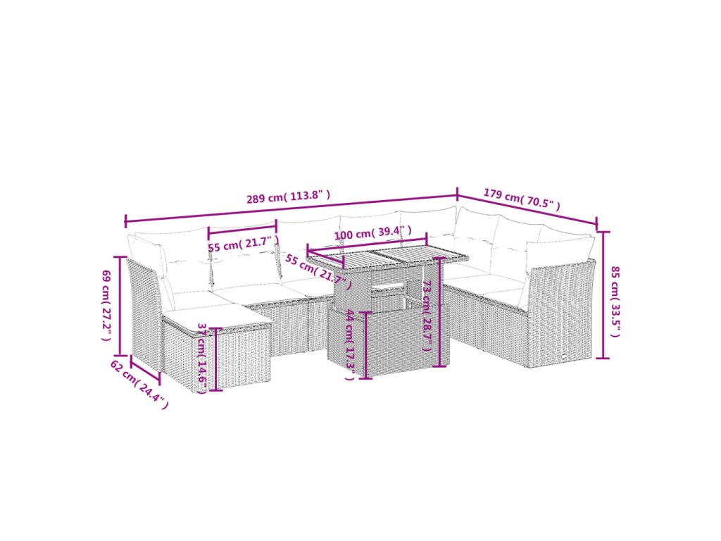 Tato zahradní sedací souprava je dokonalým doplňkem vaší zahrady, terasy nebo dvorku a poskytne vám pohodlné a příjemné místo, kde si můžete povídat s rodinou a přáteli nebo jen tak odpočívat a užívat si pobyt venku.
