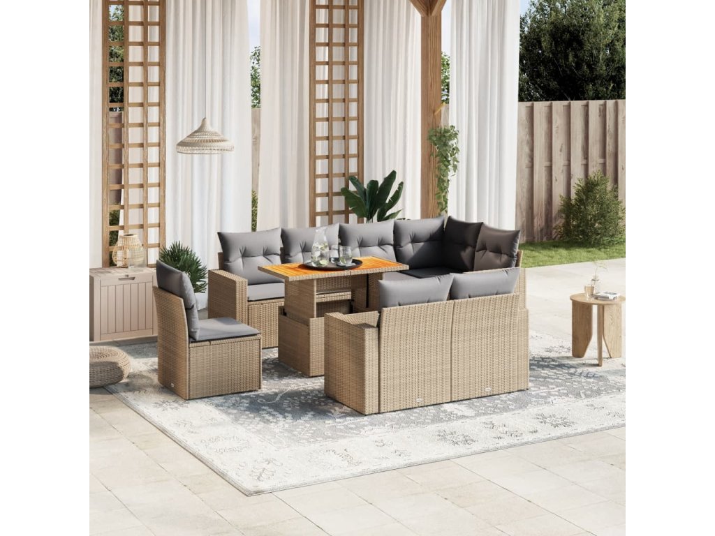 9dílná zahradní sedací souprava s poduškami béžová polyratan 3271409