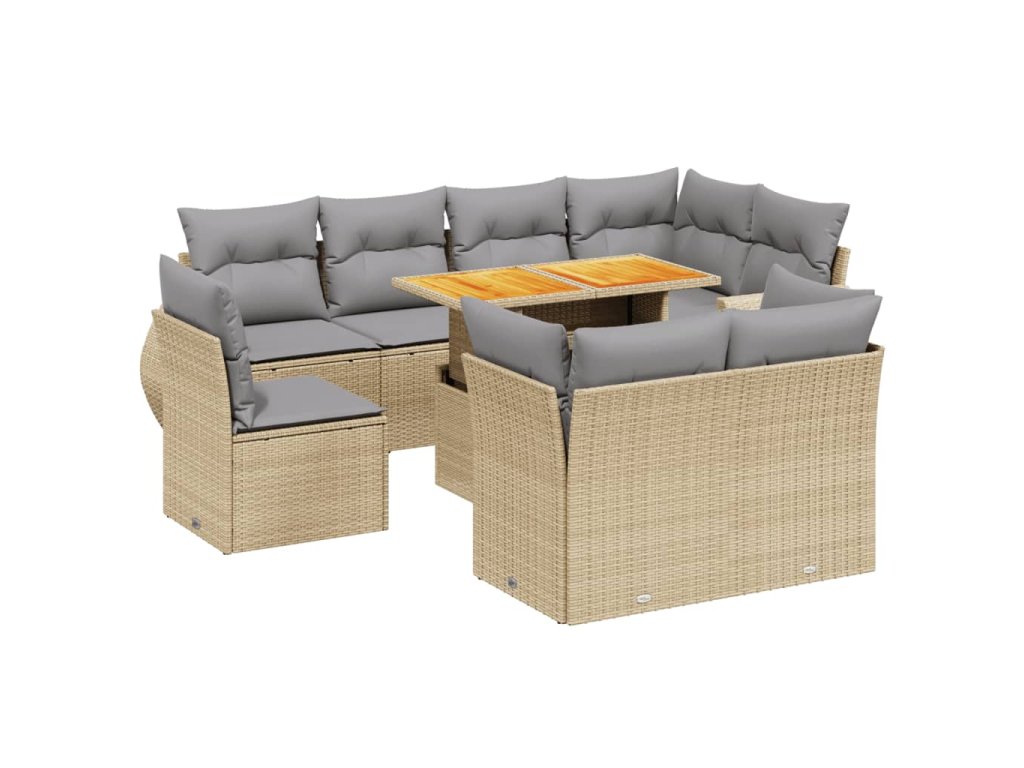 9dílná zahradní sedací souprava s poduškami béžová polyratan 3272291