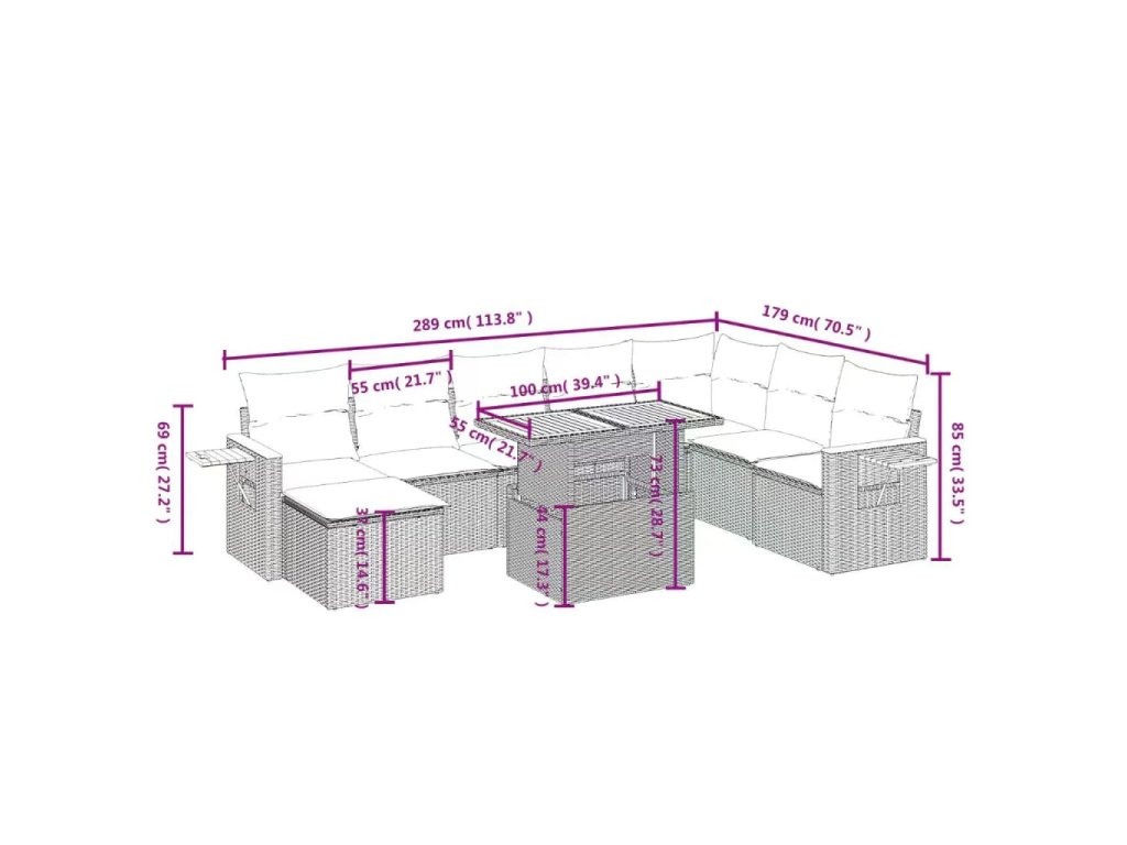 Tato zahradní sedací souprava je dokonalým doplňkem vaší zahrady, terasy nebo dvorku a poskytne vám pohodlné a příjemné místo, kde si můžete povídat s rodinou a přáteli nebo jen tak odpočívat a užívat si pobyt venku.