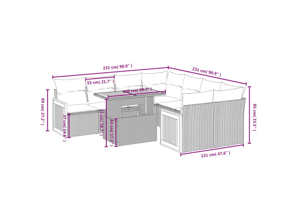 9dílná zahradní sedací souprava s poduškami béžová polyratan 3273886