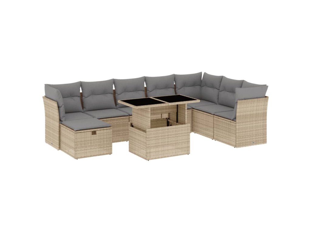9dílná zahradní sedací souprava s poduškami béžová polyratan 3274709