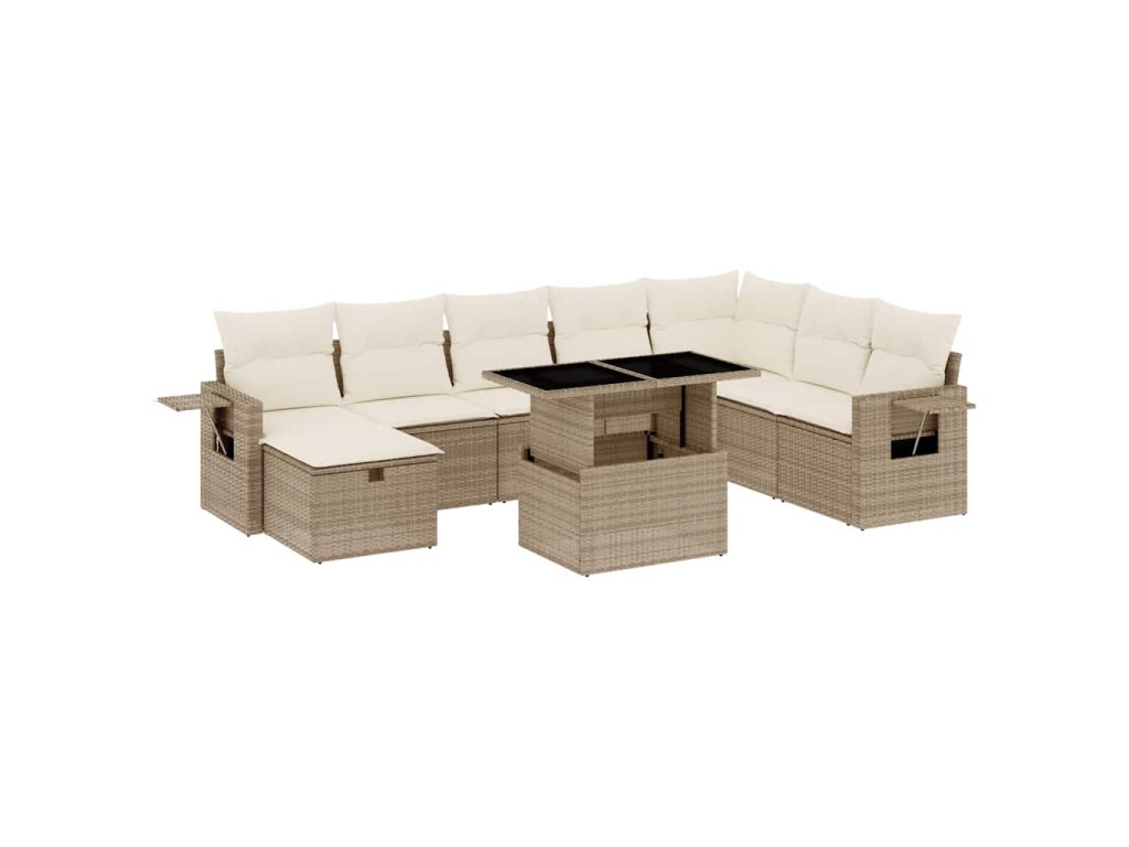 9dílná zahradní sedací souprava s poduškami béžová polyratan 3275028