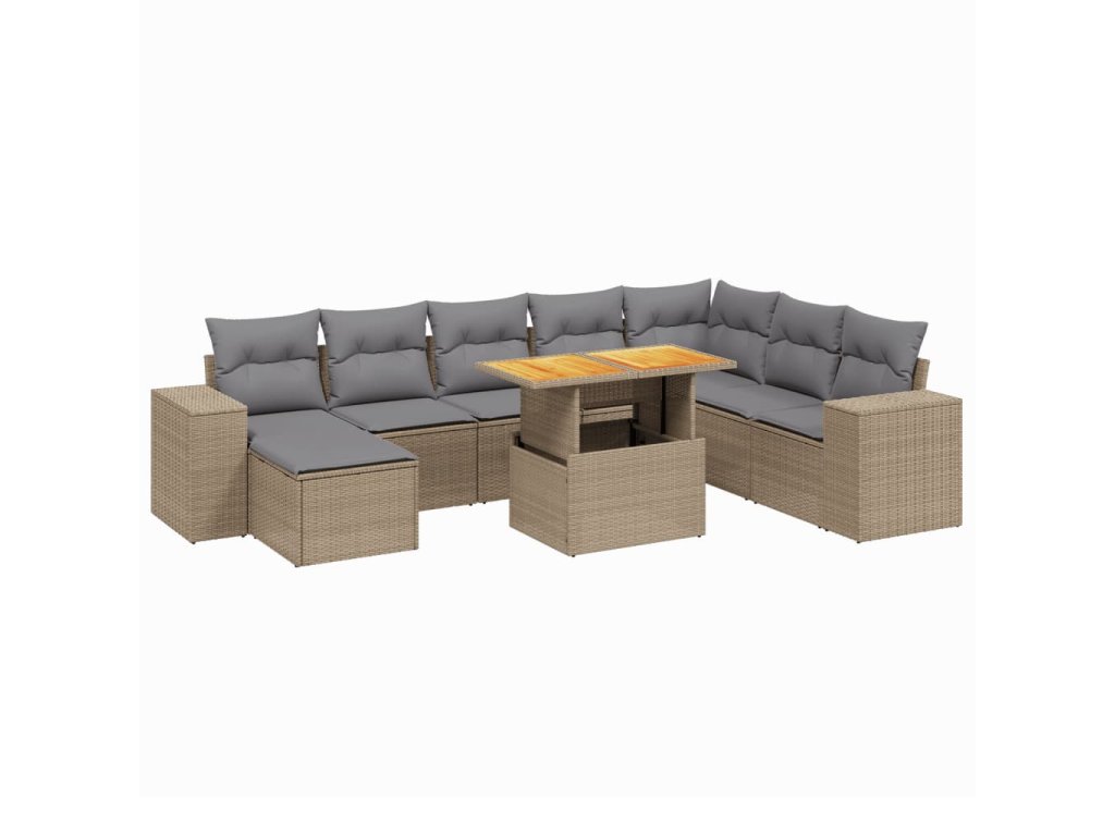 9dílná zahradní sedací souprava s poduškami béžová polyratan 3275964