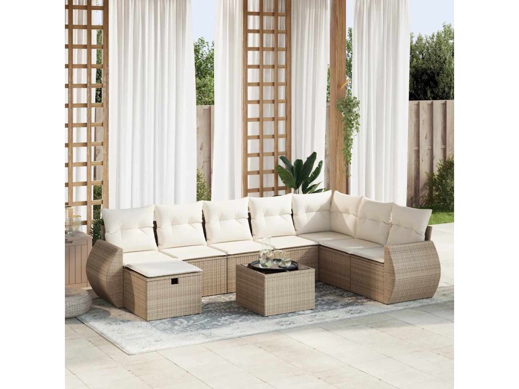 9dílná zahradní sedací souprava s poduškami béžová polyratan 3325644