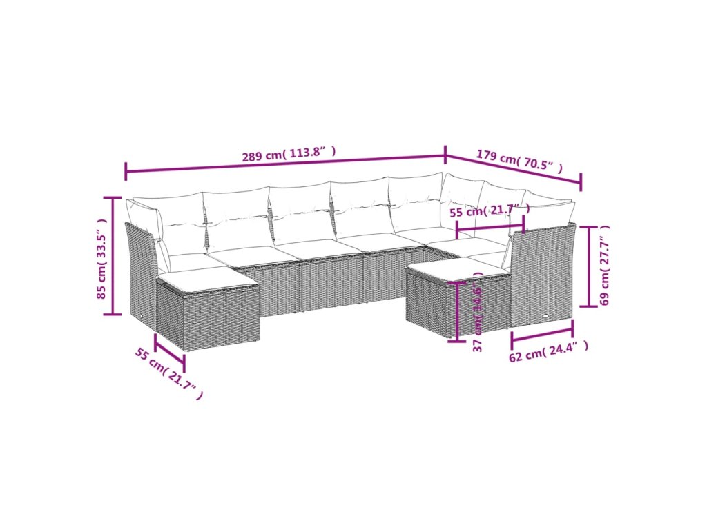 9dílná zahradní sedací souprava s poduškami černá polyratan 3218565