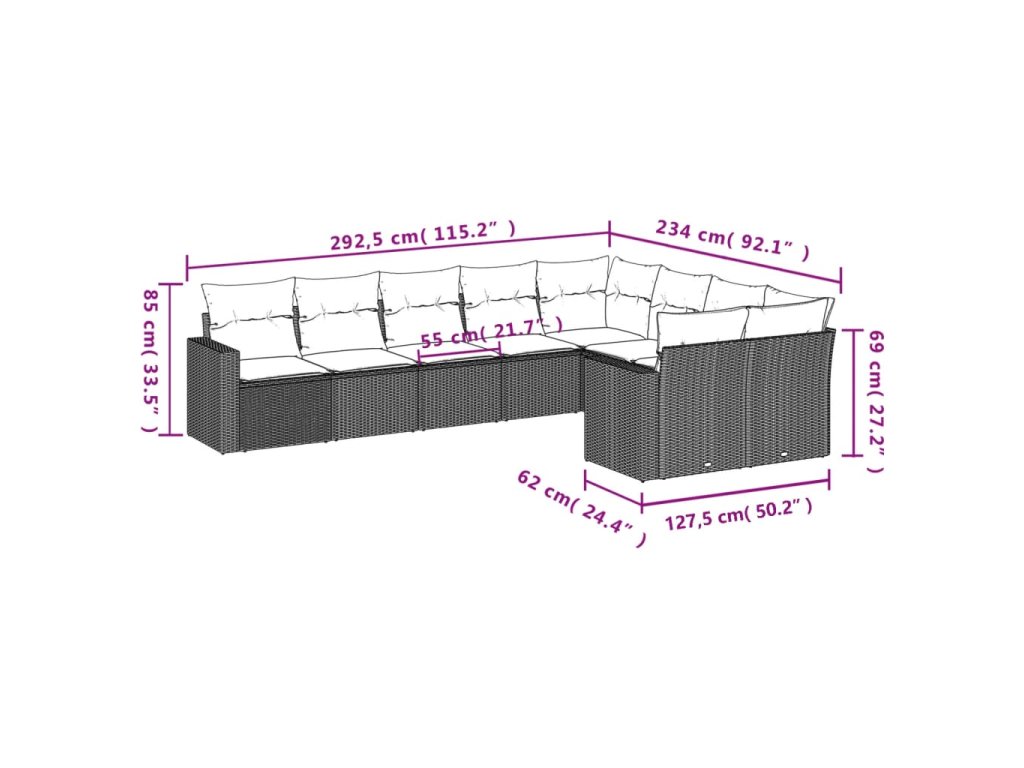 Tato zahradní sedací souprava je dokonalým doplňkem vaší zahrady, terasy nebo dvorku a poskytne vám pohodlné a příjemné místo, kde si můžete povídat s rodinou a přáteli nebo jen tak odpočívat a užívat si pobyt venku.