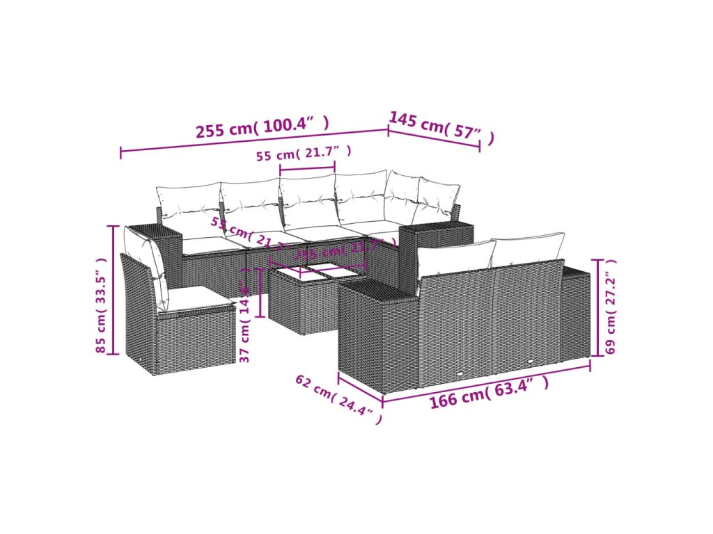 9dílná zahradní sedací souprava s poduškami černá polyratan 3222844