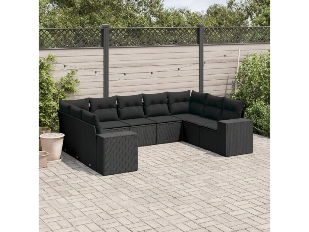 9dílná zahradní sedací souprava s poduškami černá polyratan 3222994