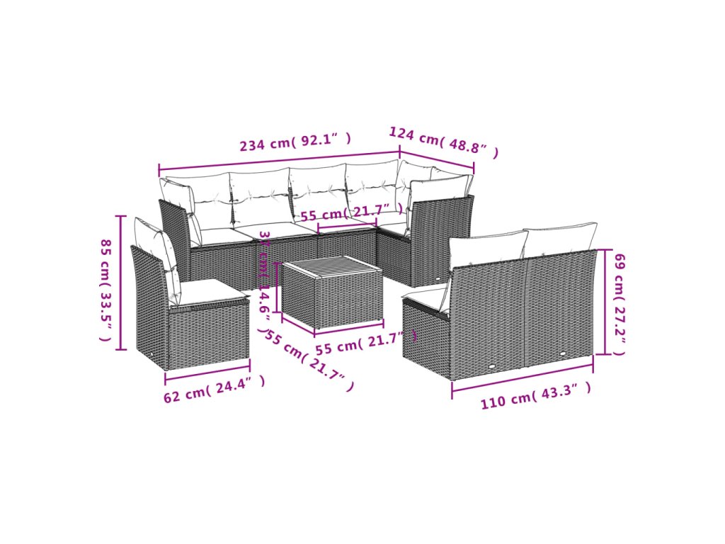 Tato zahradní sedací souprava je dokonalým doplňkem vaší zahrady, terasy nebo dvorku a poskytne vám pohodlné a příjemné místo, kde si můžete povídat s rodinou a přáteli nebo jen tak odpočívat a užívat si pobyt venku.
