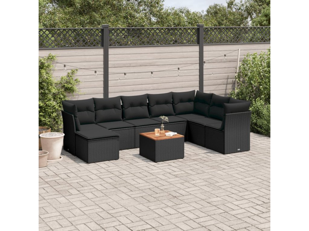 9dílná zahradní sedací souprava s poduškami černá polyratan 3223780