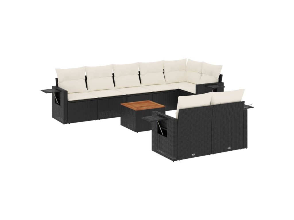 9dílná zahradní sedací souprava s poduškami černá polyratan 3224649