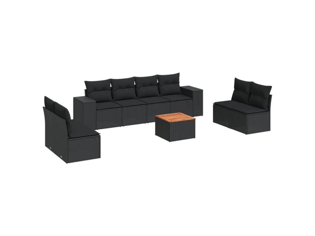 9dílná zahradní sedací souprava s poduškami černá polyratan 3225404