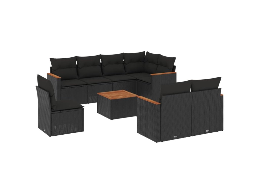9dílná zahradní sedací souprava s poduškami černá polyratan 3226167