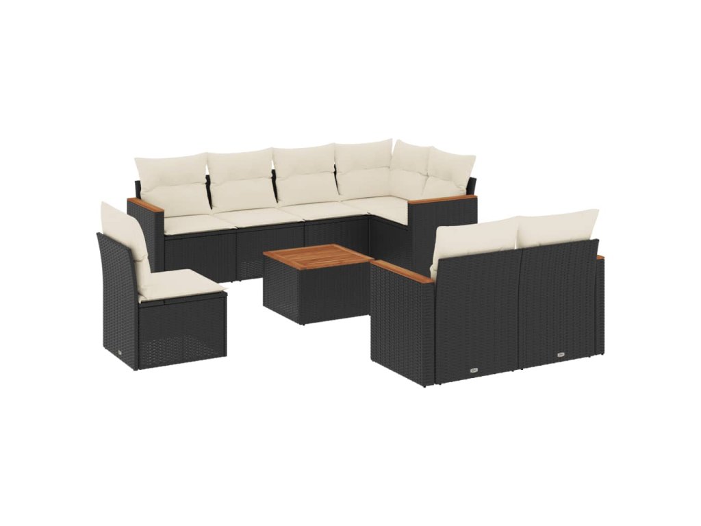 9dílná zahradní sedací souprava s poduškami černá polyratan 3226168