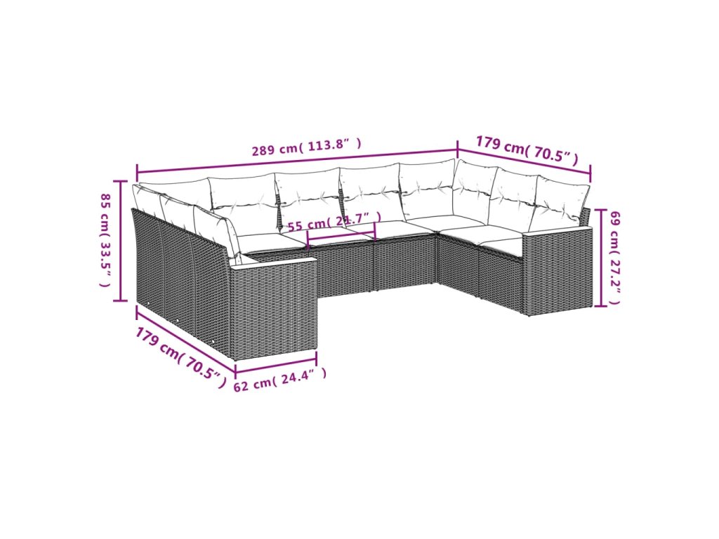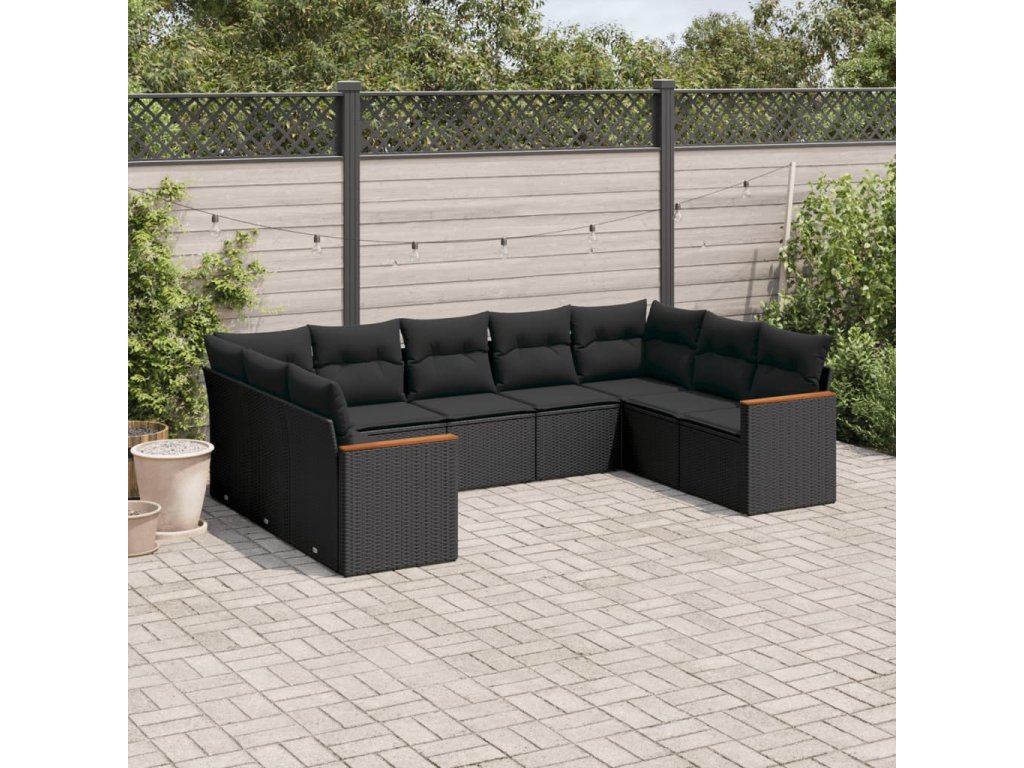 9dílná zahradní sedací souprava s poduškami černá polyratan 3226272