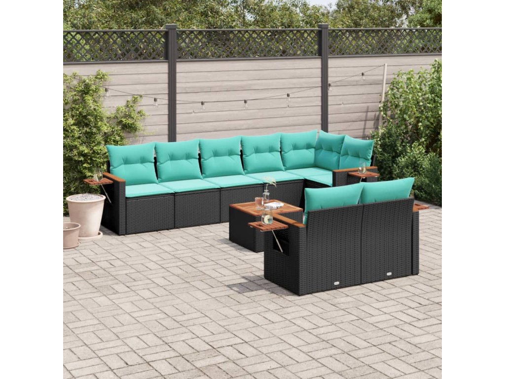 9dílná zahradní sedací souprava s poduškami černá polyratan 3226995