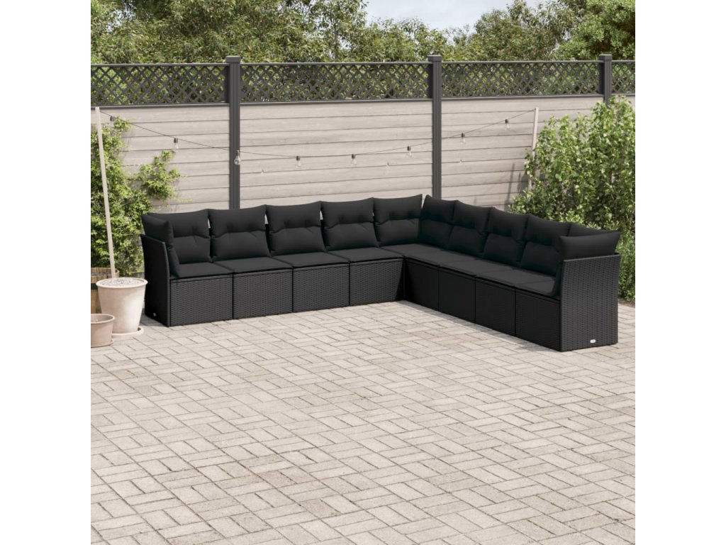 9dílná zahradní sedací souprava s poduškami černá polyratan 3249614
