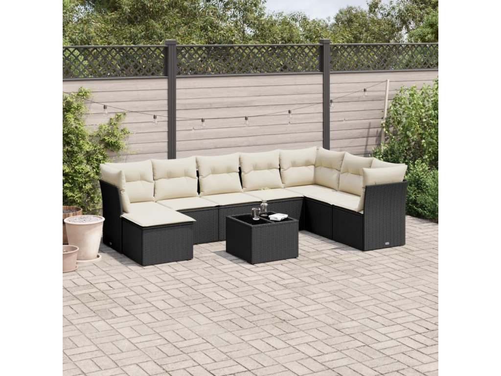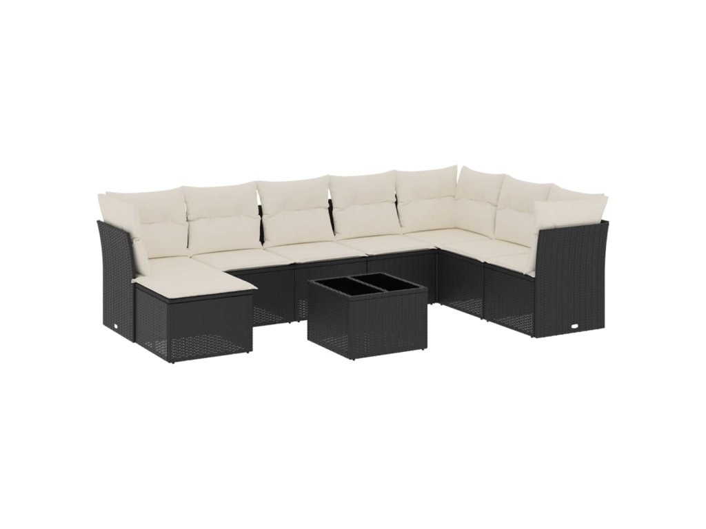 9dílná zahradní sedací souprava s poduškami černá polyratan 3249895