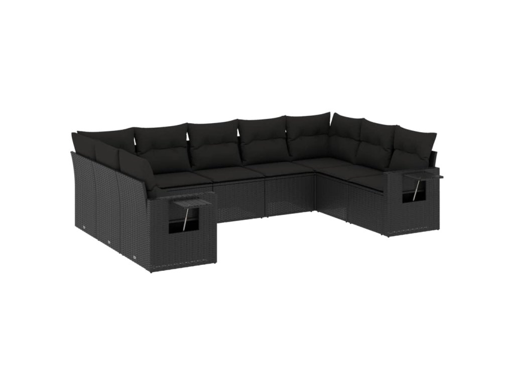 9dílná zahradní sedací souprava s poduškami černá polyratan 3252932