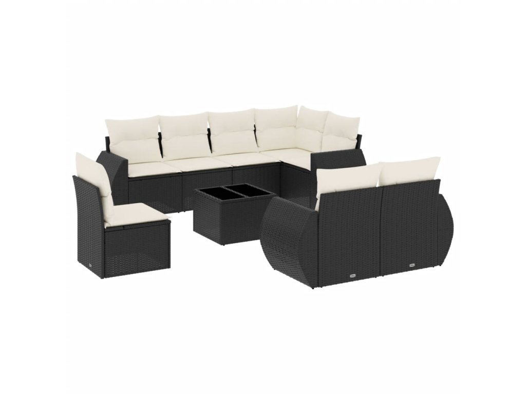 9dílná zahradní sedací souprava s poduškami černá polyratan 3253983