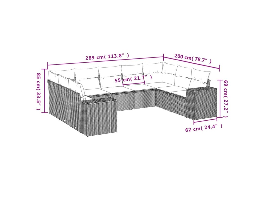 9dílná zahradní sedací souprava s poduškami černá polyratan 3255332