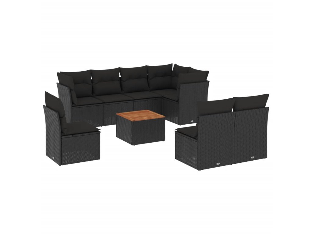 9dílná zahradní sedací souprava s poduškami černá polyratan 3256013